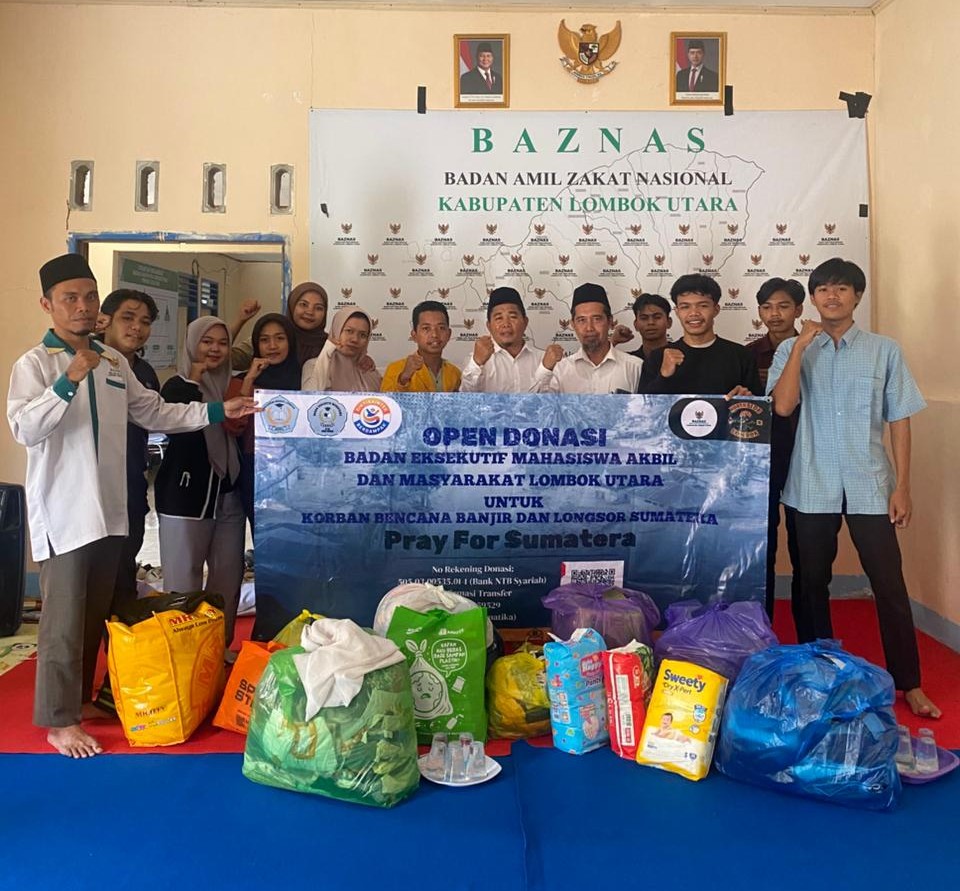 Lombok Utara – Badan Eksekutif Mahasiswa (BEM) Akademi Bisnis Lombok (AKBIL) melaksanakan aksi galang dana selama tiga hari berturut-turut di ruas jalan utama Kabupaten Lombok Utara. Aksi tersebut dilakukan sebagai bentuk solidaritas terhadap korban bencana banjir dan longsor yang terjadi di Provinsi Aceh, Sumatera Barat, dan Sumatera Utara. Hasil penggalangan dana kemudian diserahkan secara resmi kepada Badan Amil Zakat Nasional (BAZNAS) Kabupaten Lombok Utara pada Senin (08/12/2025).